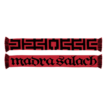 Store exclusive 'It's A Hell Of An Age' Scarf in red and black.